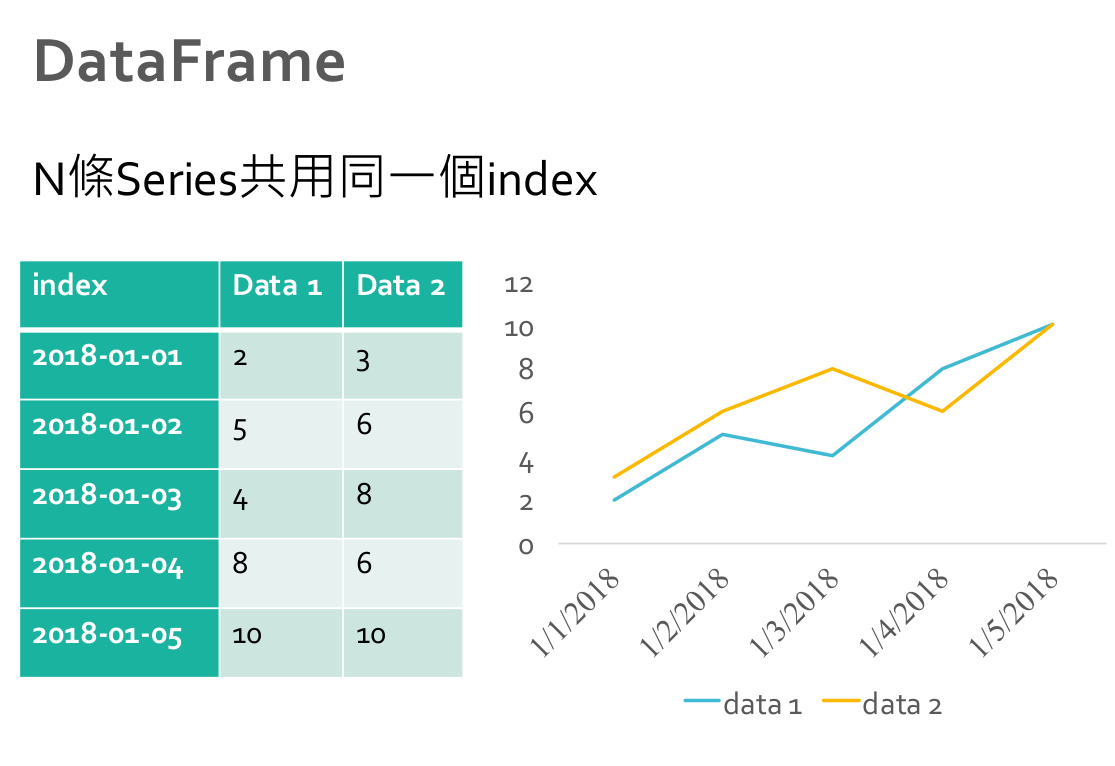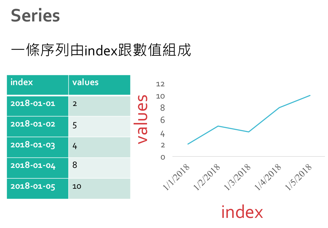 - index 長度與 data 相同的陣列 (必須是hashable),預設值是(0, 1, 2, …, n)